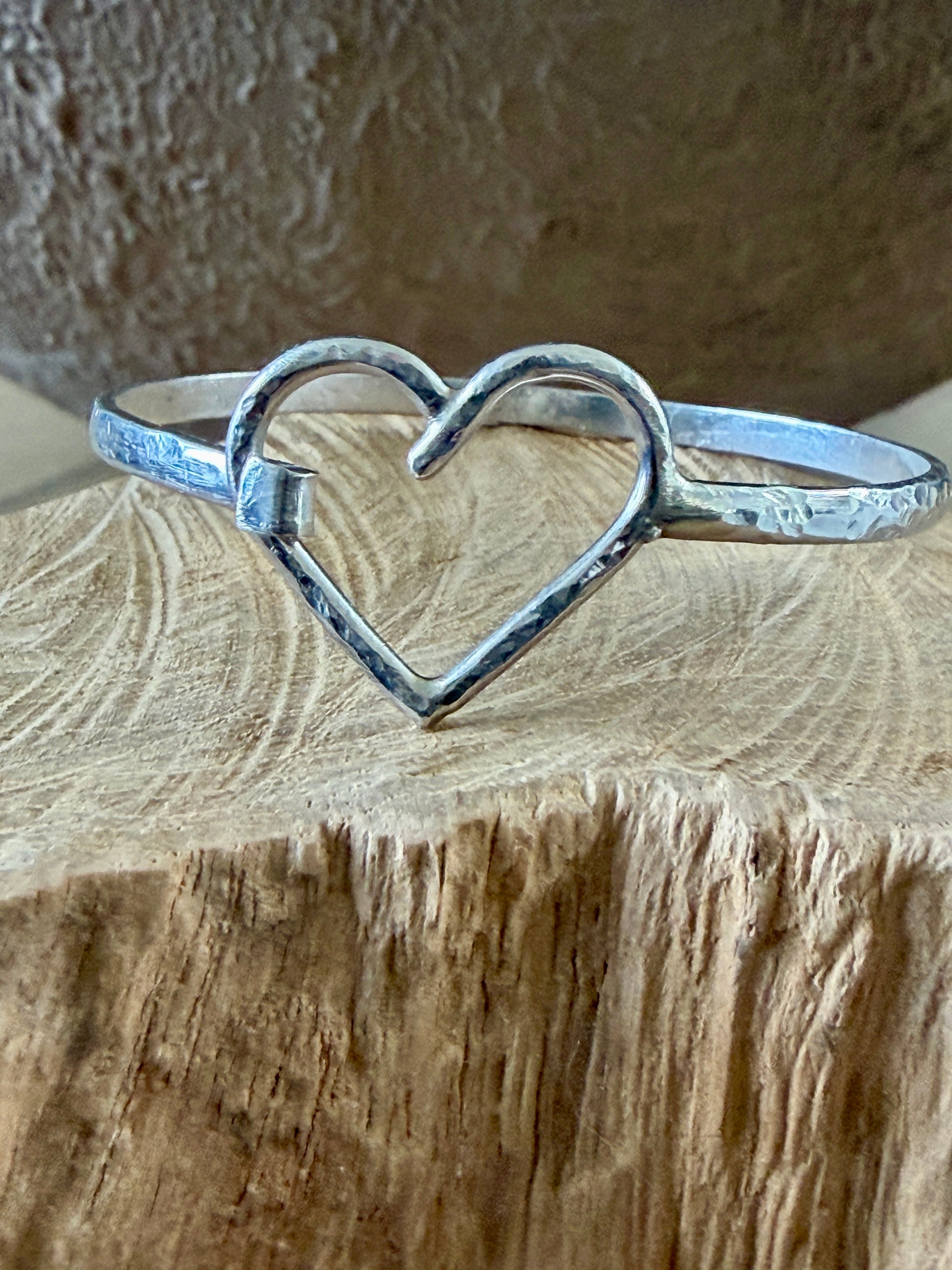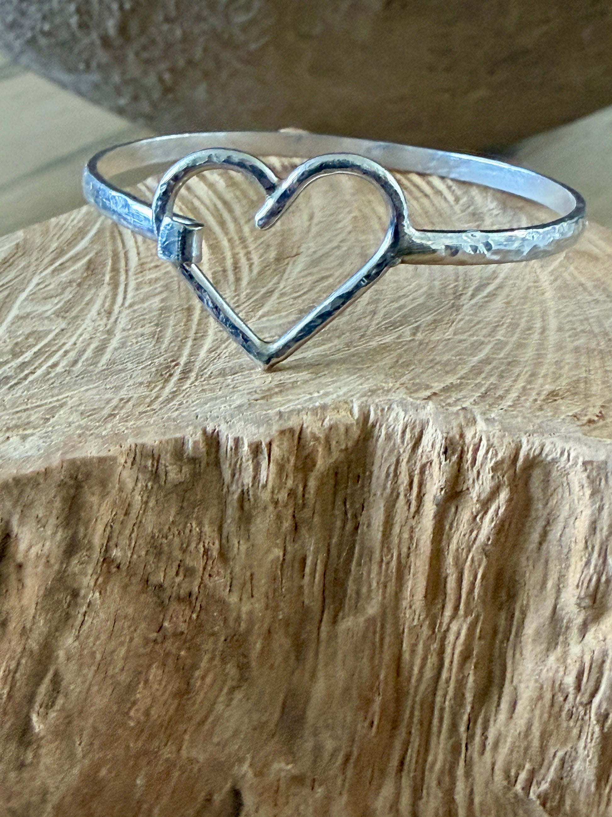 This bracelet is a reminder that love will always win. Perfect as a reminder to love yourself through the good days and the not so good ones. This bracelet measures 7” and will fit the average wrist (according to Mr. Google :). It is hammered for texture and is perfect alone for everyday wear.