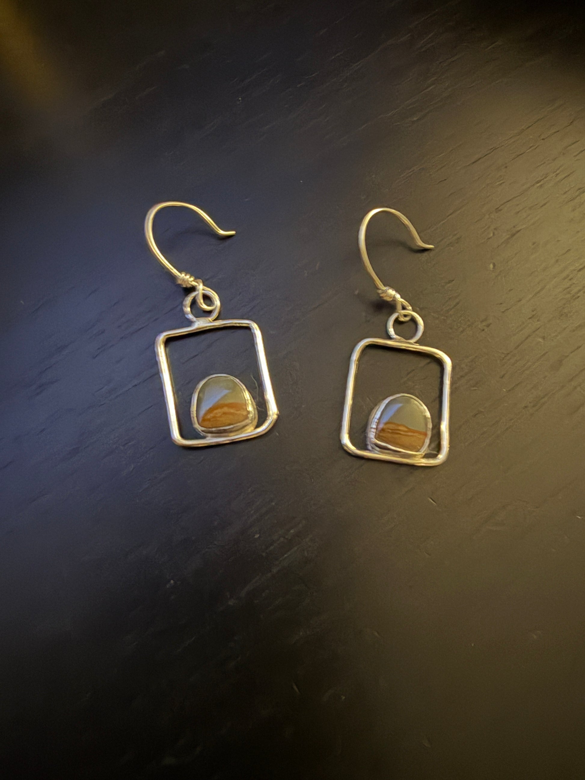 These little picture Jasper nugget earrings are made from sterling silver. They remind me of looking out the window at the night sky.