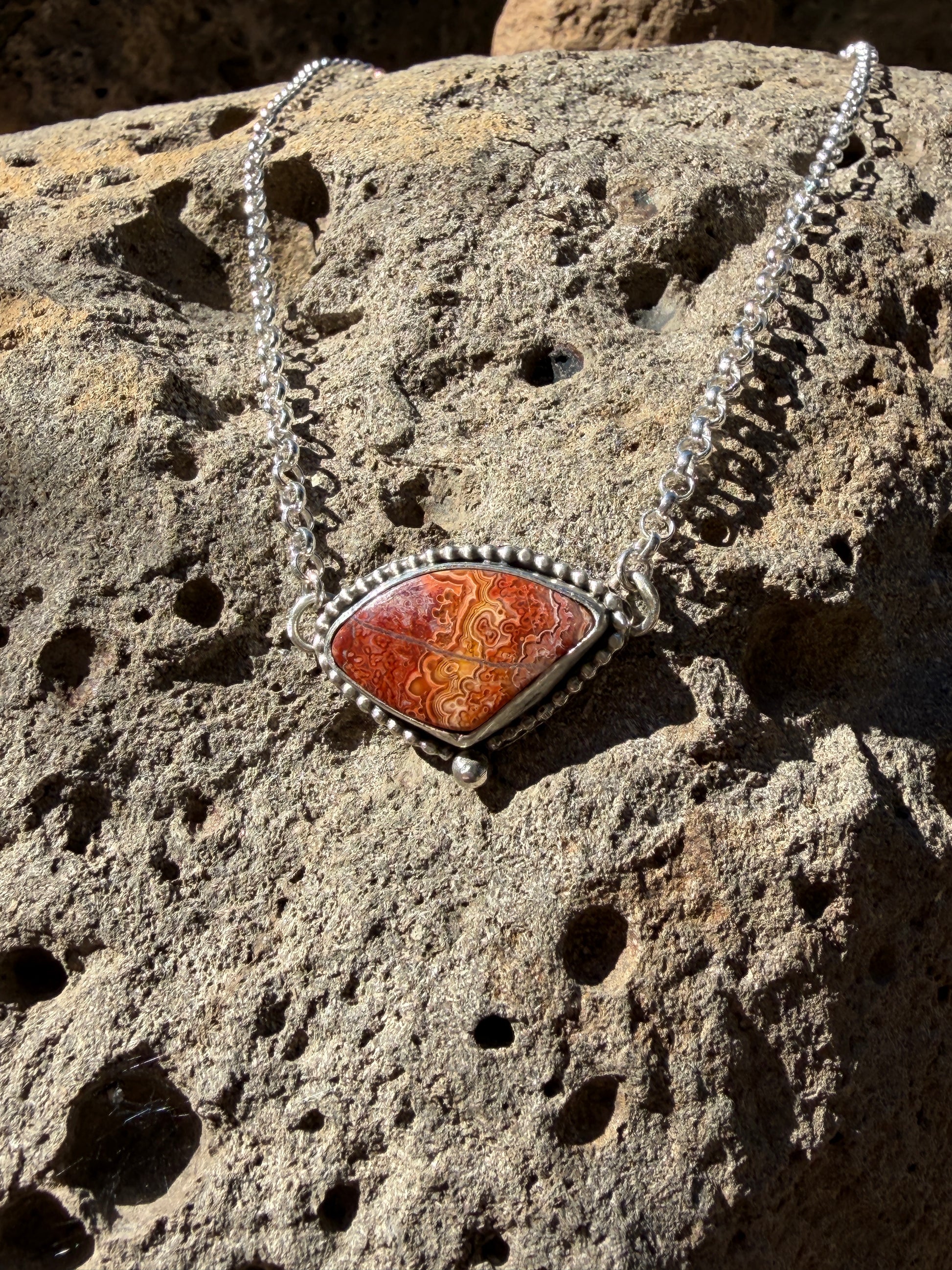 When you put this necklace on you just might feel like a Roman Goddess. The colors are sure to put you in a happy mood! This necklace is 18” in length and sterling silver.