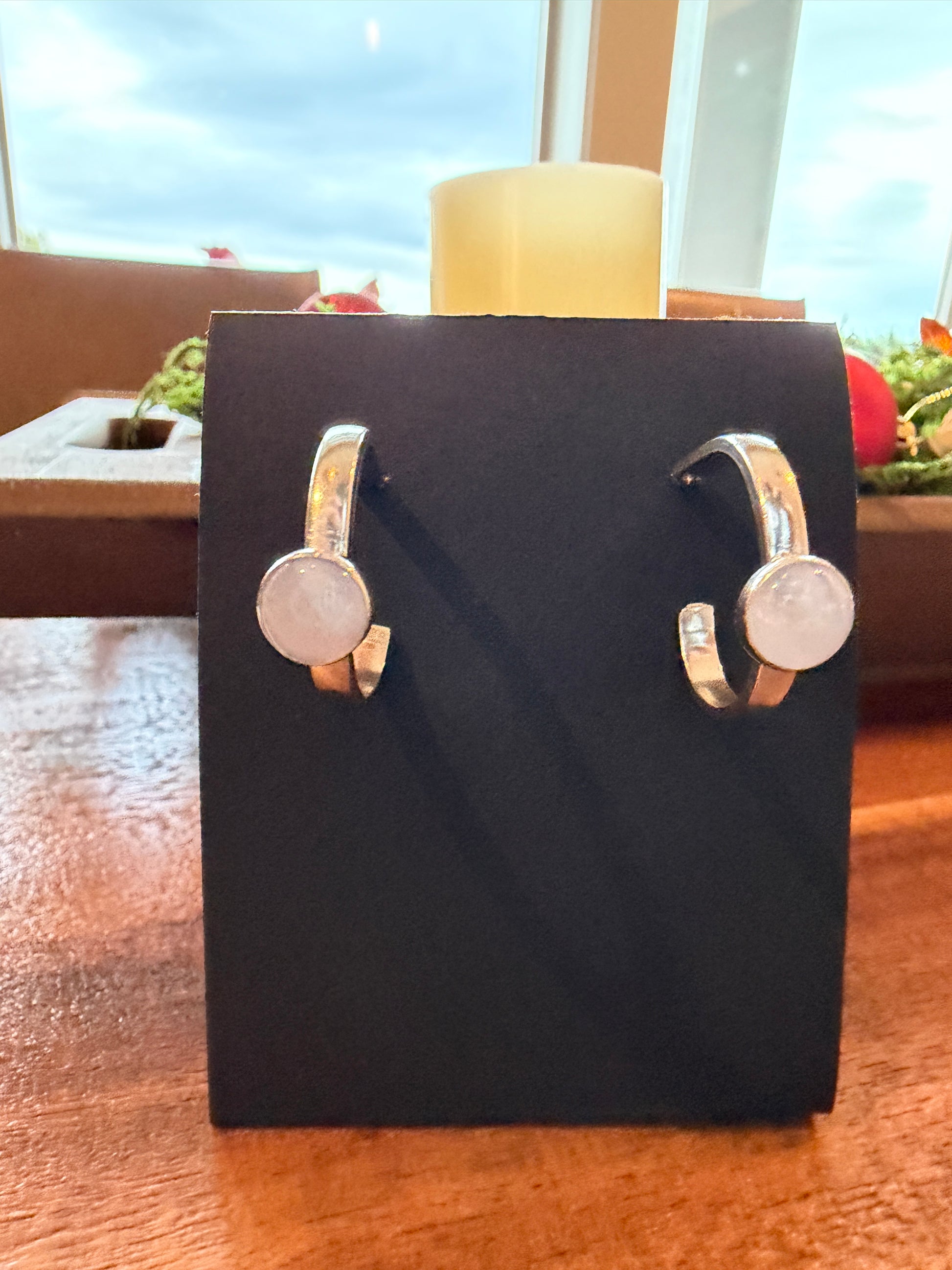 This new design is so much fun. These hoops will go with everything. They are made from a nice thick wire and the stone is neutral but mysterious. They are unique and easy to wear.