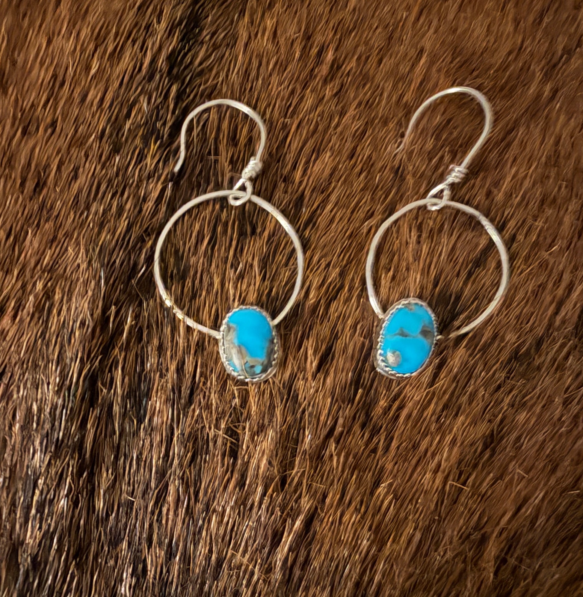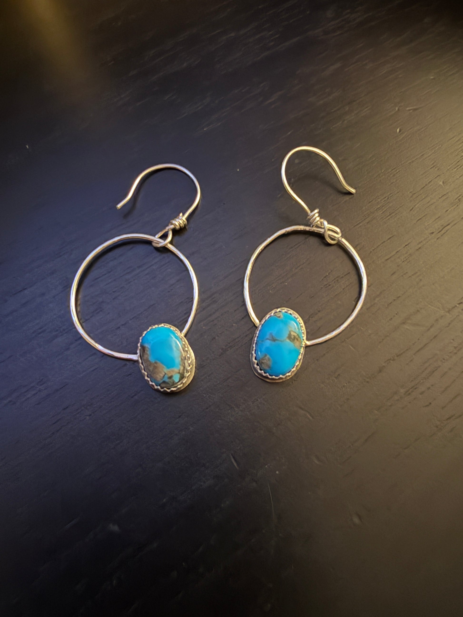 These turquoise and sterling silver hoops are absolutely stunning. They are perfect with a pair of jeans or a little black dress.